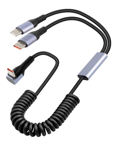 YANBORONSN 90 graders USB C splitter fjäderkabel, högervinklad 2 i 1 lindad USB C till USB typ C snabbladdningskabel för telefon, surfplatta (1,6 fot)