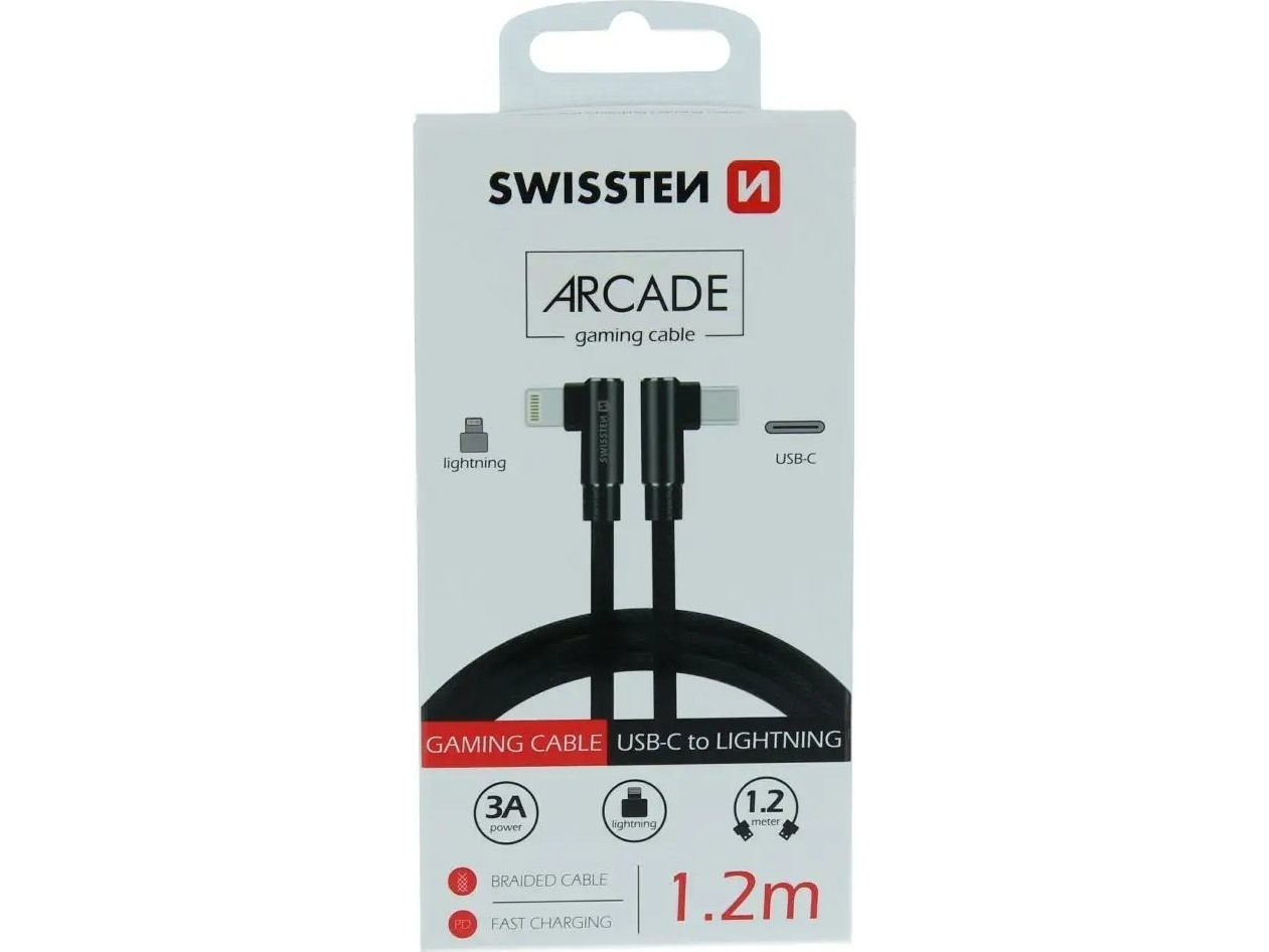 Swissten L Type Textile Universal Quick Charge 3.1 Usb-C Su Lightning Data Ir 1,2M Įkrovimo Laidu