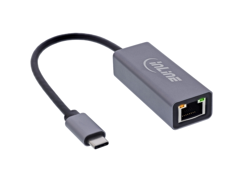 Inline 33380Q, Usb Type-C, Rj-45, Hankoppling, Grå, 0,15 M, Data, Energiljus