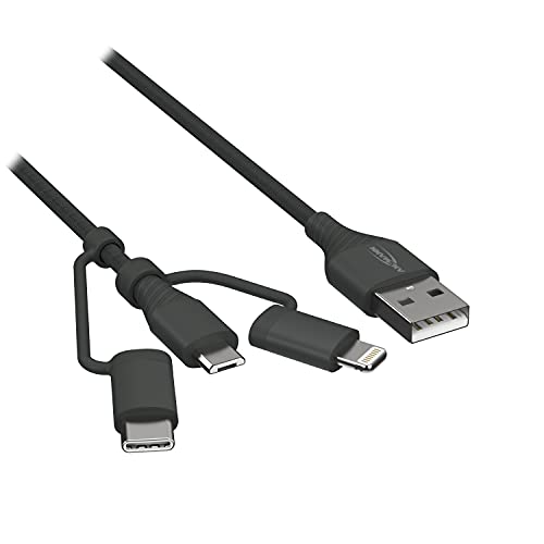 ANSMANN USB 3-i-1 micro/type-C/Lightning-data och laddkabel, 120 cm lämplig för alla vanliga enheter som laddas eller drivs med en USB-C, Lightning eller mikro-USB-anslutning