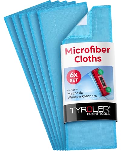 Tyroler Bright Tools Pack med 6 ersättningsdukar i mikrofiber – används med den magnetiska fönsterrengöraren – supermjuk, icke-slipande – mycket absorberande dukar – bäst för glasfönster och mer