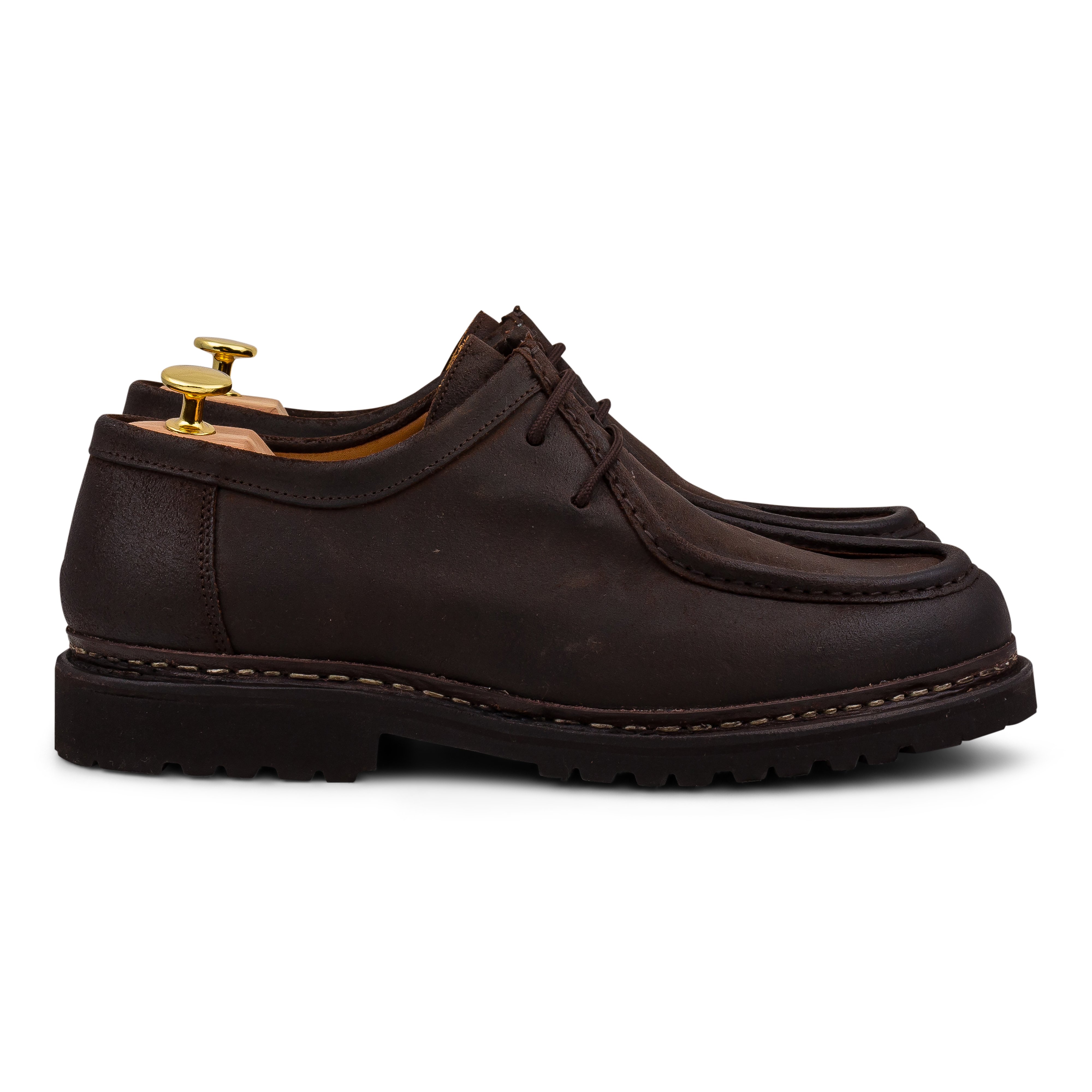 Breiter Original mäns kostymhatt, filthatt, vandringshatt tyroler art, 100 % ull, hamparep, ädelvit och smalt brätte, BRUN, 58 cm