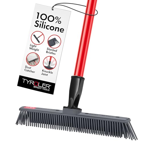 Tyroler Dammfångare Gummikvast | Mjuk kvast 41,5 cm huvud 100 % gummiborste | 140 cm anti-rost handtag golvborste | Perfekt matta husdjurshår för golv, trä, marmor, plattor, däck, inomhus och utomhus