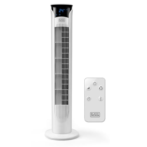 BLACK+DECKER BXEFT48E - 45W kolumnfläkt, 3 hastigheter, 3 lägen, digital oscillerande och tyst fläkt med fjärrkontroll 81 cm hög, timer 12 h, omgivningstemperatur, kraftfull