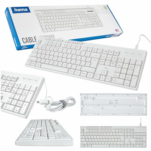 Hama tangentbord CK-200 trådbundet vitt (Qwerty Polish, USB, tyst, numeriskt, ergonomiskt, justerbart)