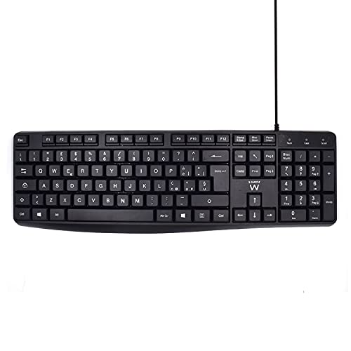 Ewent USB-kabelanslutet tangentbord med tyst skrivning, QWERTY italiensk layout för PC, bärbar dator, med Windows- och OS-system, 1,5 m kabel, svart