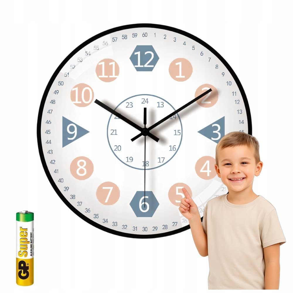 Väggklocka för att lära sig tid för barn tyst 25 cm + Gratis batteri