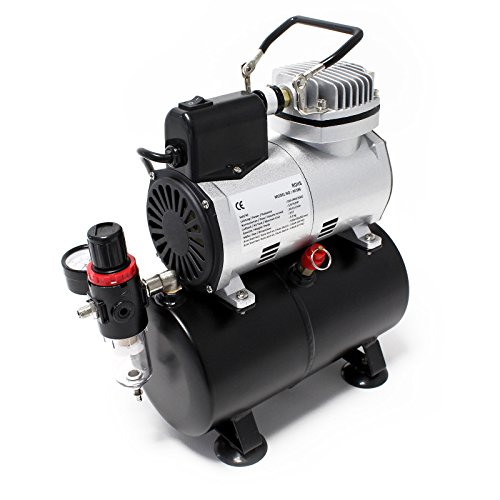 Airbrush Kompressor AF186 med Lufttank Tryckregulator 4 bar Start Stopp System Oljefri Tystgående