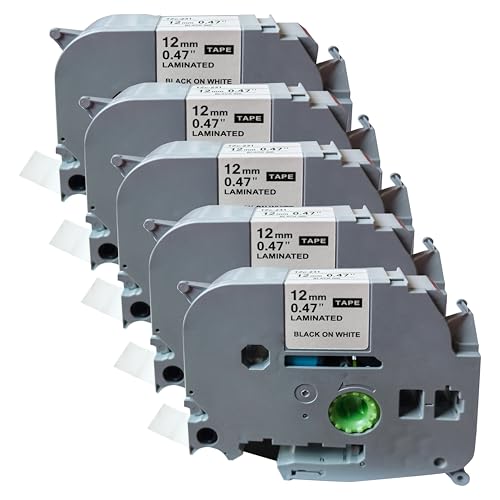 5x Yuanqimm Compatible TZe231 TZe-231 TZ231 TZ-231 for Brother P touch Label Tape 12mm 0,47 Black on White Tape for Brother PT-D400 PT-H100LB PT-H105 PT-D200 PT-1000 PT-H110 PT-H101 PT-H107B PT-D210