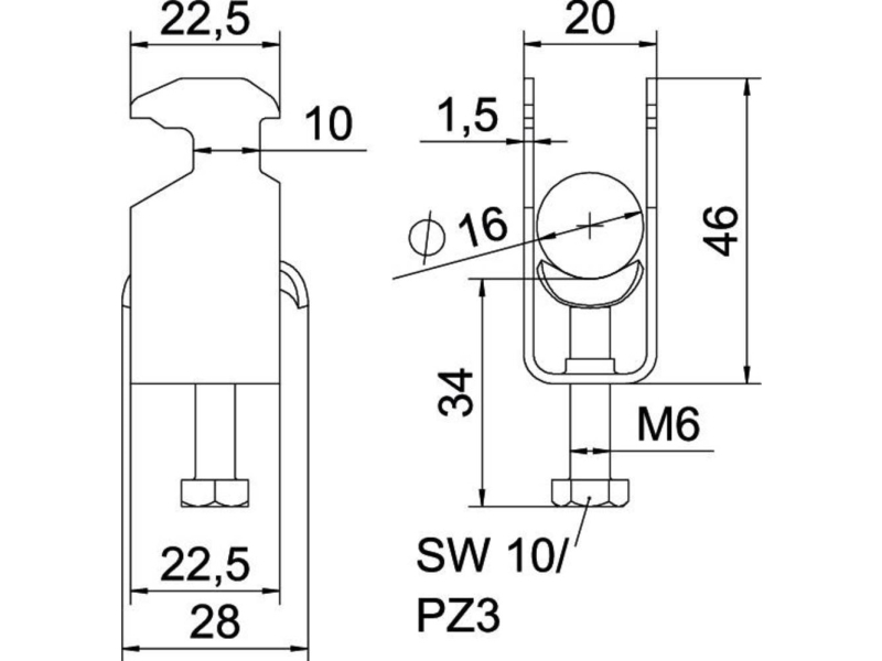 Obo Bs-N1-K-22 Ft U-Klämma 2056 16-22Mm Varmförzinkad 1187214 100 (1187214)
