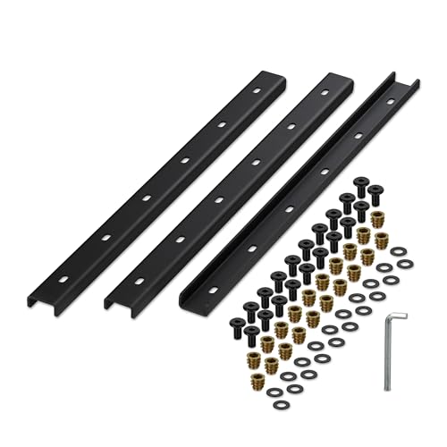 Relaxdays Grattis-list, set om 3, metallskena 60 cm, bordsskiva stabiliserar, U-profil med skruvar, stål, svart