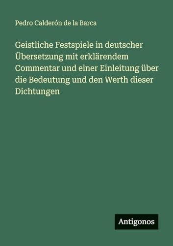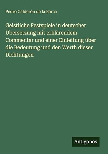 Geistliche Festspiele in deutscher Übersetzung mit erklärendem Commentar und einer Einleitung über die Bedeutung und den Werth dieser Dichtungen