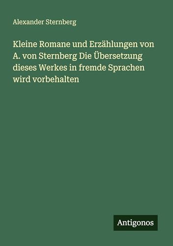 Kleine Romane und Erzählungen von A. von Sternberg Die Übersetzung dieses Werkes in fremde Sprachen wird vorbehalten
