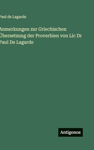 Anmerkungen zur Griechischen Übersetzung der Proverbien von Lic Dr Paul De Lagarde