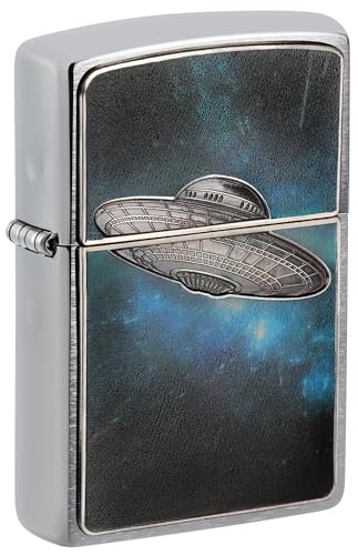 Zippo Stormtändare – UFO in Galaxy, borstad krom, emblem, påfyllningsbar, återanvändbar, vindskyddad, presentförpackning, tillverkad i USA