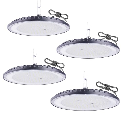 200W LED UFO High Bay Light,Fosingut High Bay LED-butiksbelysning industriell lampa,6500K 110lm/W IP65 vattentät LED-lagerlampor hallstrålkastare taklampa för kommersiell verkstad,garage,fabrik-4pcs