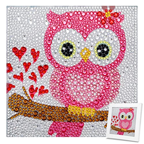 MWOOT 5D DIY diamantmålning för barn, kit, uggla diamant pasted målning set, komplett borrset med korsstygn broderi strass efter nummer för hem, vardagsrum dekoration (15 x 15 cm) - uggla