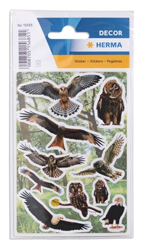 HERMA 15685 klistermärken fåglar små stora, 30 stycken, djurklistermärken med uggla örn musbussard vithövdad havsörn motiv, barnetiketter för fotoalbum dagbok scrapbooking dekoration brev