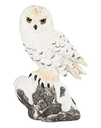 ICE ARMOR 12,7 cm H snöig uggla stående på klippstaty vilda djur dekoration statyett kontor skrivbord/hem/vardagsrum/bordsdekor, perfekta inflyttningsgåvor för nytt hem