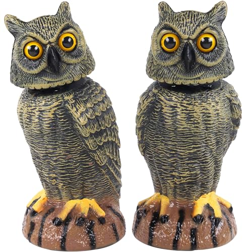 Hausse 2-pack fågelskrämma falsk uggla dekoration skulptur, 25 cm höjd gyllene roterande huvud plast uggla fågel avskräckande, natur fiende horn skadedjursmedel för utomhus trädgård gård