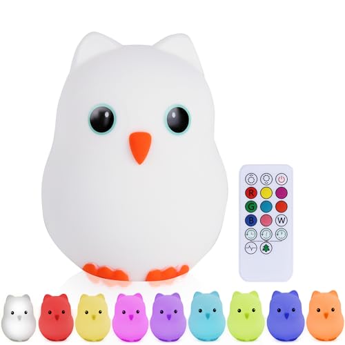 Kadoing® Nattlampa Uggla för Barn - Stor och Uppladdningsbar - med Tryckfunktion och Fjärrkontroll - Nattljus för Bebis - Leksak och Present till Barn - Barnlampa LED