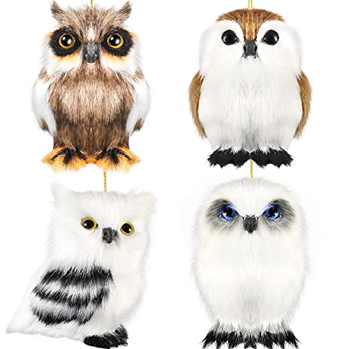 4 delar hängande uggla vita julprydnader mini plysch uggla prydnad jul blandade uggla lurvig uggla hängande dekor julgransdekorationer för julfest heminredning, 4 stilar