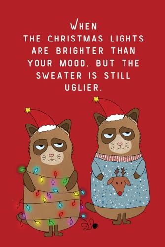 Notizbuch: Ugly Sweater and Bad Mood - Weihnachtskatzen mit Attitude | Liniert, 120 Seiten, 15.24 x 22.86 cm