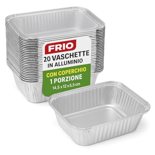 FRIO Aluminiumbadkar 20 stycken med lock 1 portion 14,5 x 12 x 5,5 cm – perfekt för take away, catering, rostverk, ugn och frys, matlagning och förvaring av mat