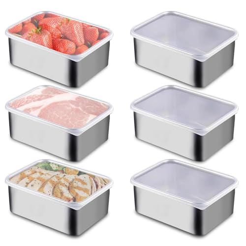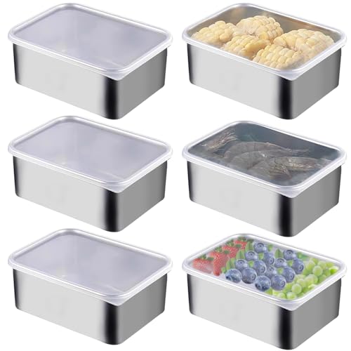 GOMETY 6 stycken matbehållare i rostfritt stål med lock, rostfritt stål måleriprep-lådor, perfekt storlek 13,5 x 10,5 x 5,5 cm för Meal Prep, förvaringsburkar, stapelbara mealpreplådor för ugn, frys