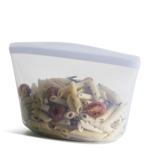 Stasher Premium silikon återanvändbar matförvaringsväska, klar | Mikrovågsugn, Sous Vide, diskmaskin, ugn och frys säker | BPA-fri, läckagefri, miljövänlig, 8-koppsskål