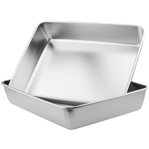 Onader Fyrkantig ugnsform, set om 2, rostfritt stål, fyrkantig, kakform, bakform med non-stick-beläggning, perfekt för kakor/brownie/lasagne, hälsosam och lätt att rengöra – 15,9 x 15,9 x 5 cm