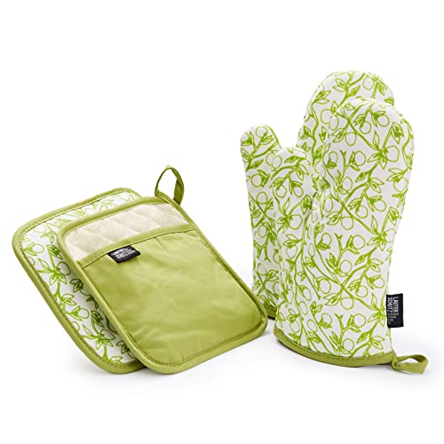 LAUTER SCHUTZ ® grytlappar och ugnshandskar i set - extra mjuk, tvättbar och återvunnen bomull [värmebeständig upp till 250 °C] grythandskar för matlagning och bakning (grön)