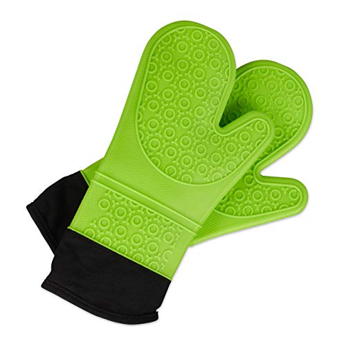 Lauterschutz® Ugnshandskar som par – grythandskar med full silikon: Värmebeständiga och extra långa – tvättbar och mjuk bomull [kontaktvärme: 250 °C] matlagning och bakning (grön, full silikon)