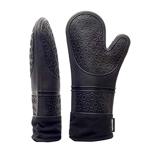 Professionella ugnshandskar, extra långa silikongrytlappar, värmebeständiga ugnshandskar (svart, 1 par)