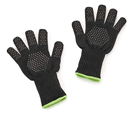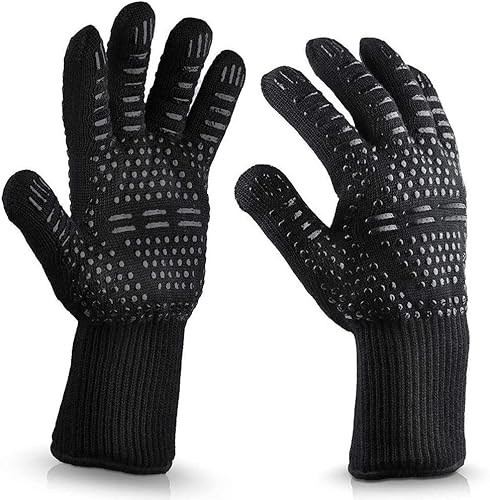 SPGOOD Grillhandskar värmebeständiga 800 grader brandsäkra handskar matlagningshandskar bakhandskar för kök grill BBQ ugnshandskar, svart (M/XL)