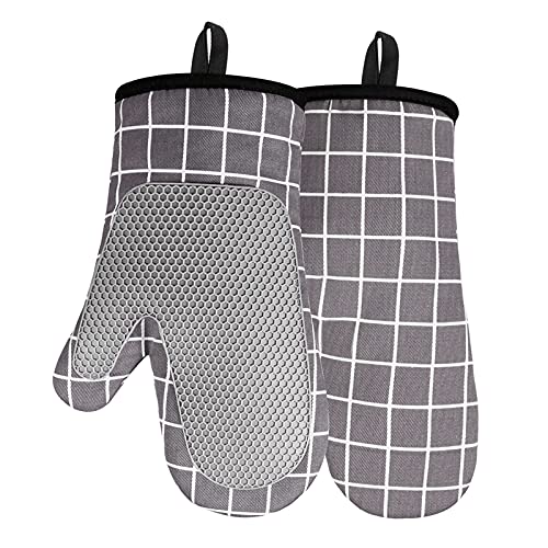Acxilexy Ugnshandskar värmebeständiga, kök grythandskar med silikon och bomullsfoder halkfri design, fyrkantiga skarvar bakhandskar, matlagningshandskar för matlagning, bakning, grillning