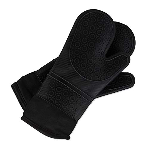 Lauterschutz® Ugnshandskar som par – grythandskar med full silikon: Värmebeständiga och extra långa – tvättbar och mjuk bomull [kontaktvärme: 250 °C] matlagning och bakning (svart, helt silikon)