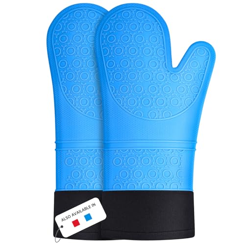 Ugnshandskar i silikon, sopito värmebeständiga 446 F silikonugnsvantar med bomullsfoder, lång halkfri ugnshandske för kök (blå, 1 par)