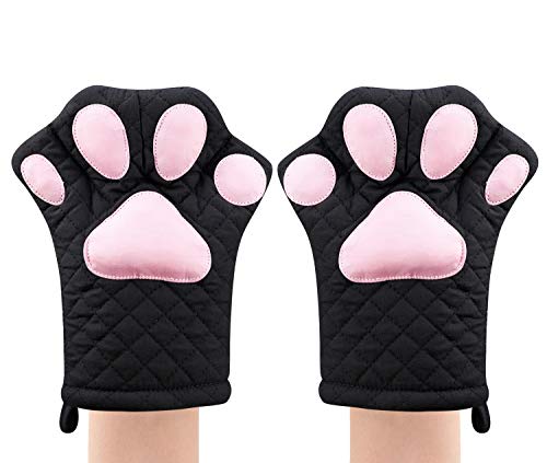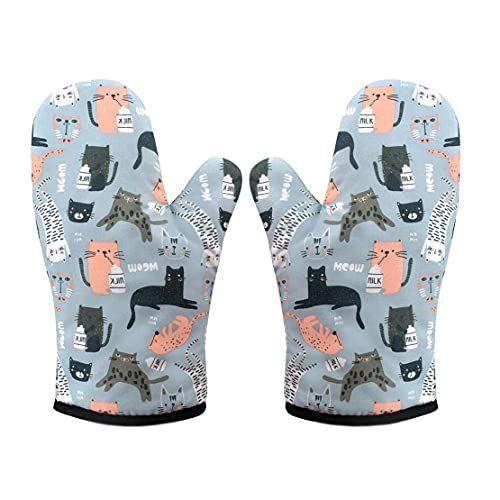 Cisixin 1 par ugnshandskar för kök värmebeständiga kökshandskar, ugnshandskar med bomullsfoder för BBQ matlagnings set bakning grillning het grytlapp katt grå