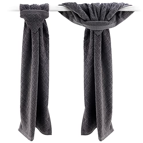 Michael Grace Gifts Grå handdukar med upphängningsöglor, 2-pack, för kök, badrum, disktrasor, ugnshandskar utan knappar, tryckknappar eller nitar