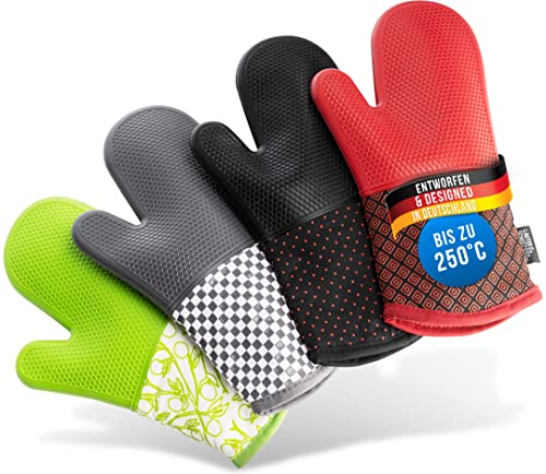 LAUTER SCHUTZ ® Ugnshandskar som par - grythandskar med silikonbeläggning: Värmebeständiga och extra långa - tvättbar och mjuk bomull [kontaktvärme: 250 °C] matlagning och bakning (grå)