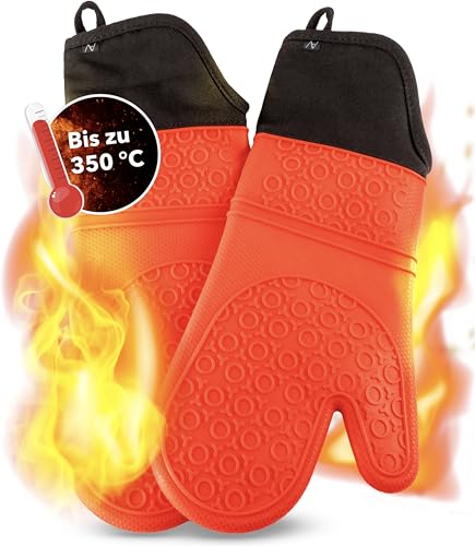 AVANA Ugnshandskar i silikon värmebeständiga halkfria kökshandskar med mjukt bomullsfoder upp till 350 °C handskar för matlagning och bakning – röd