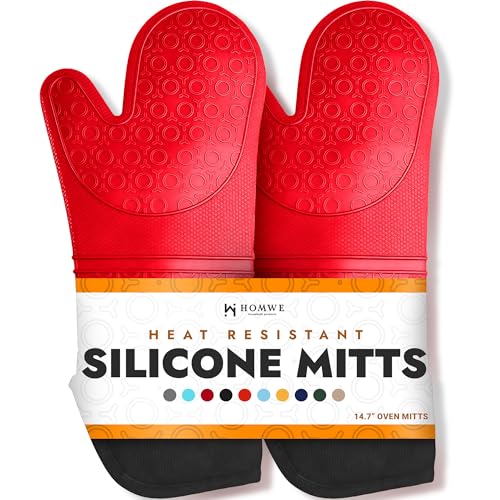 HOMWE Extra lång professionell silikon ugnsvantar med quiltat foder, värmebeständiga grythållare, flexibla ugnshandskar, röd, 1 par, 35 cm