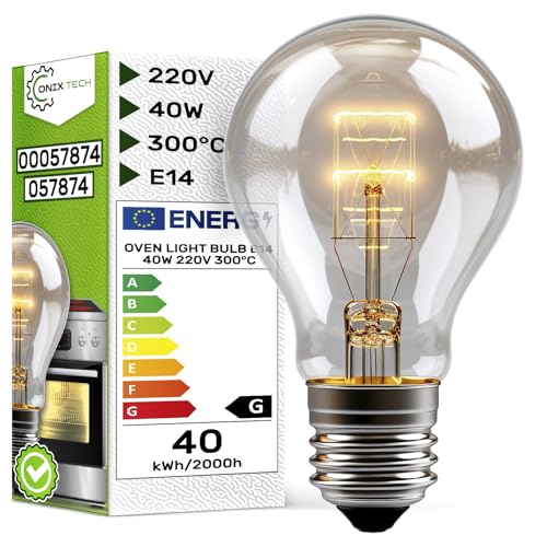Ugnslampa E14 40W 220V 300°C Sockel Ø14 mm med Originalkod 00057874 057874 Lämplig för Bosch för Siemens - i Form av en Sfär - ONIX TECH