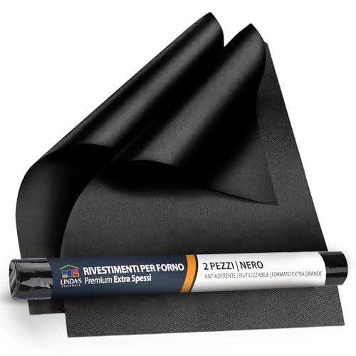 Linda's Essentials Ugnsmattor (2 stycken) – non-stick kökstillbehör 32 x 50 cm, återanvändbar ugnsmatta, högtemperaturbeständig ugnsbeläggning, lätt att rengöra (svart),
