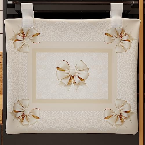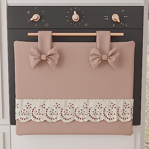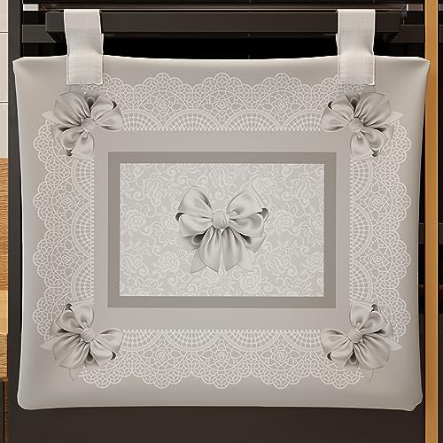 PETTI Artigiani Italiani - Ugnsöverdrag, elegant ugnsskydd, Shabby Chic i enfärgad med volang i spets angallo och rosetter, ugnsskydd i bomull, ugnsskydd 50 x 42 cm cypria
