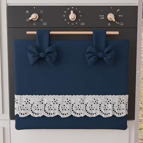 PETTI Artigiani Italiani - Ugnsskydd, elegant ugnsskydd, enfärgad Shabby Chic ugnsskydd med Sangallus spetsvolang och rosetter, ugnsskydd i bomull, ugnsskydd 50 x 42 cm nattblå