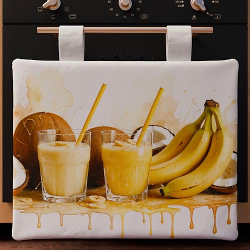 PETTI Artigiani Italiani - Kökstillbehör, 40 x 50 cm mikrofiber, modernt ugnsskydd i digitalt tryck kokosnöt och banan, 100% tillverkad i Italien