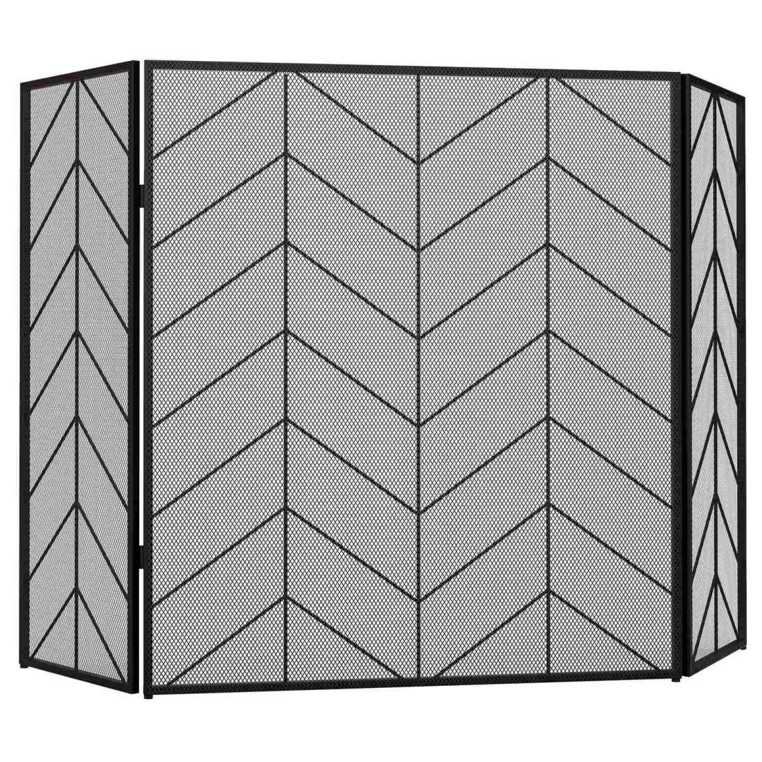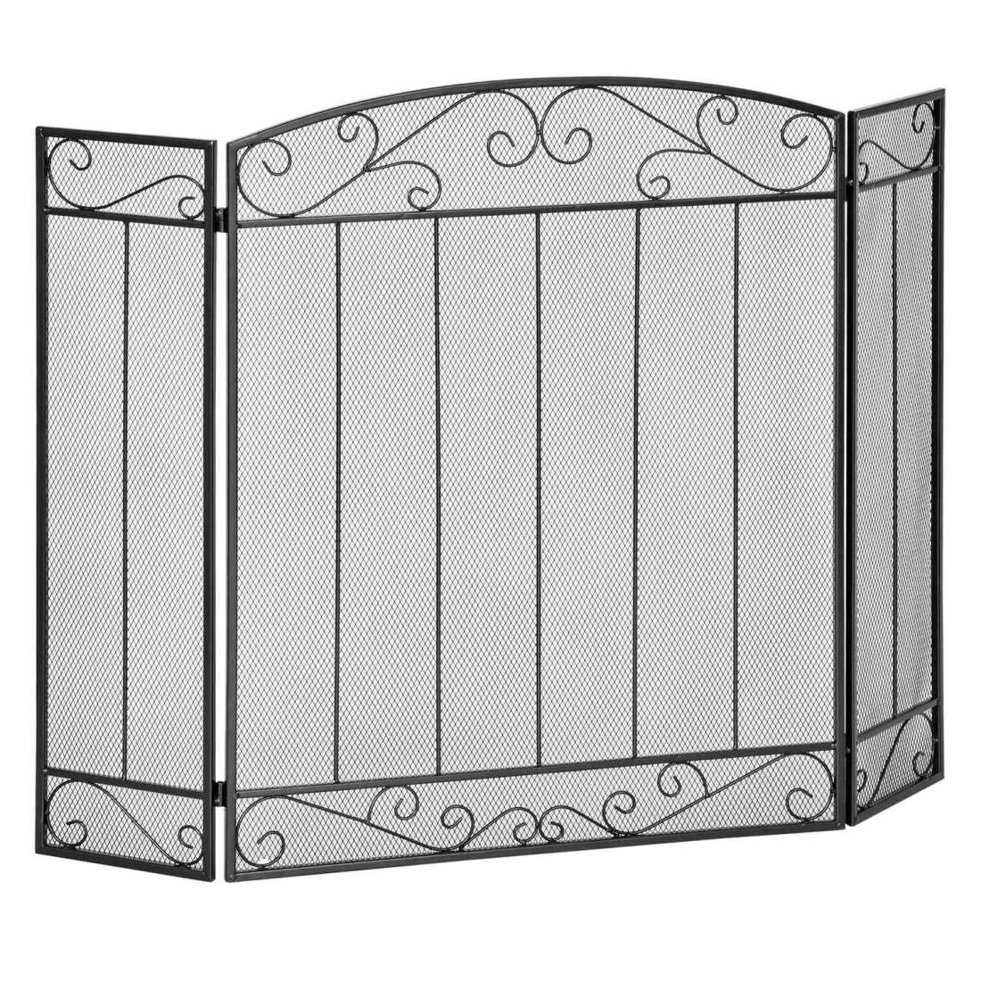 Eldstadsskydd, hopfällbar spisgrind med 3 paneler, ugnsskydd, gnistskydd för vardagsrum, metall, 126 x 76 cm, svart