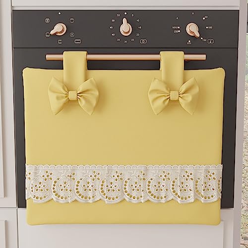 PETTI Artigiani Italiani - Ugnsöverdrag, elegant ugnsskydd Shabby Chic i enfärgad med volang i spets sjungel och rosetter, ugnsskydd i bomull, ugnsskydd 50 x 42 cm gul